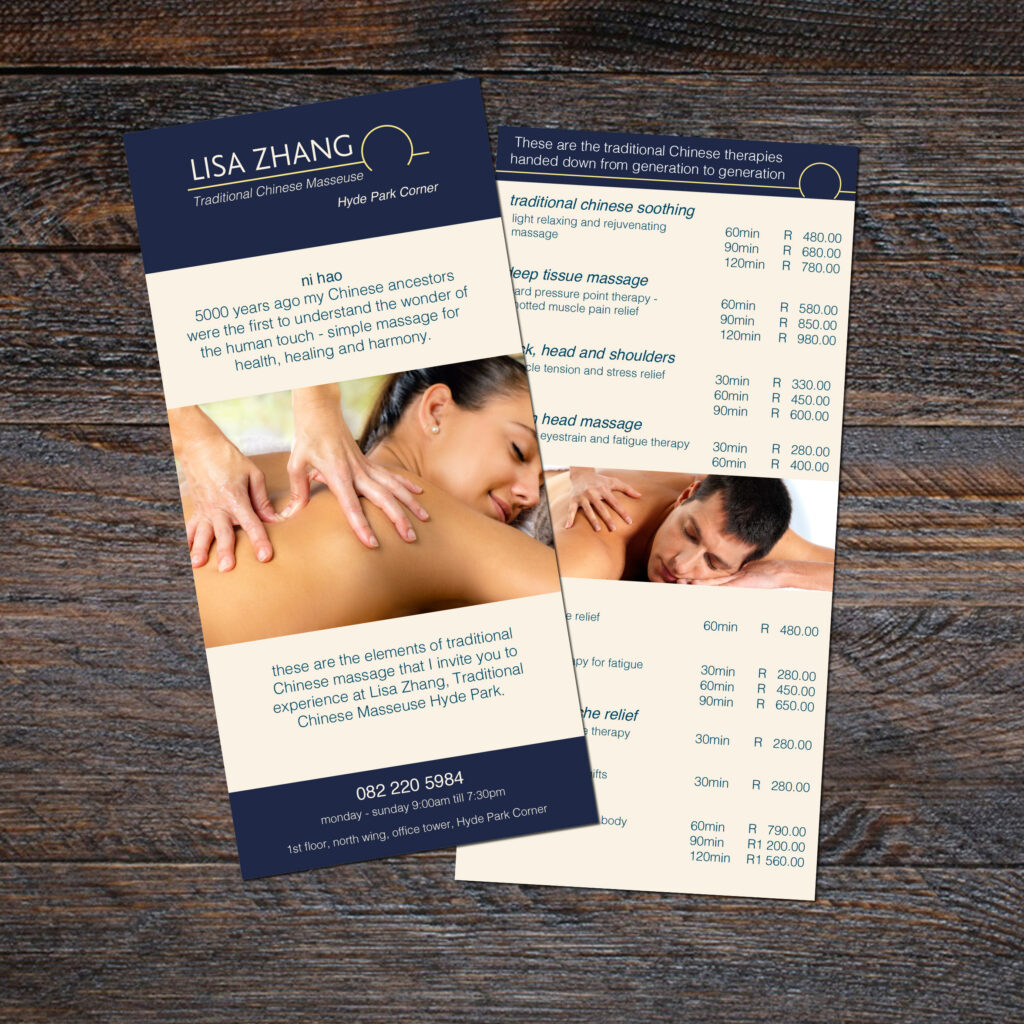 For this project, I designed the logo, business cards, letterhead, price flyer, vouchers, door decal, and designed and coded the website on WordPress.