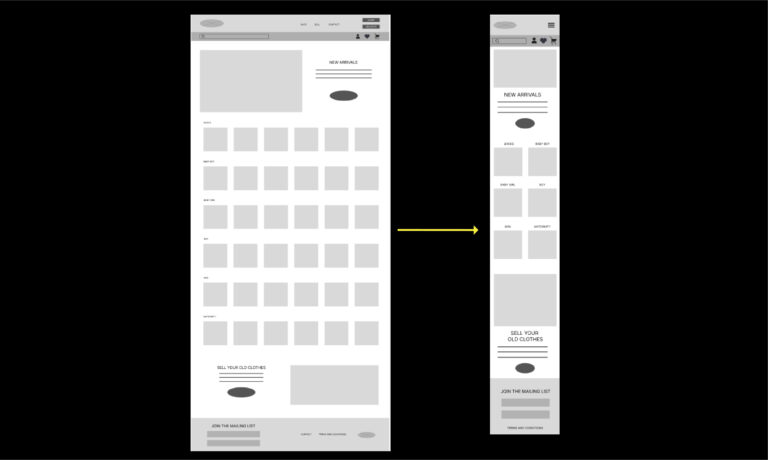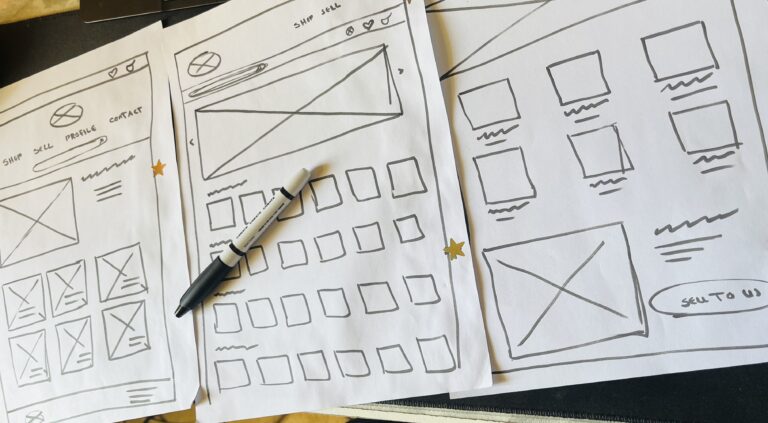 Next I sketched out the paper wireframes for the website, keeping in mind the navigation and user pain points. I wanted it to be very visual and highlight the products with easy navigation.