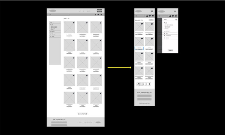 Some items didn’t fit on a single page for the mobile such as the filter, instead of being next to the items like on the desktop design it is a button with a filter that you can show and hide.