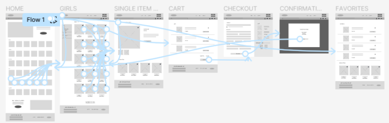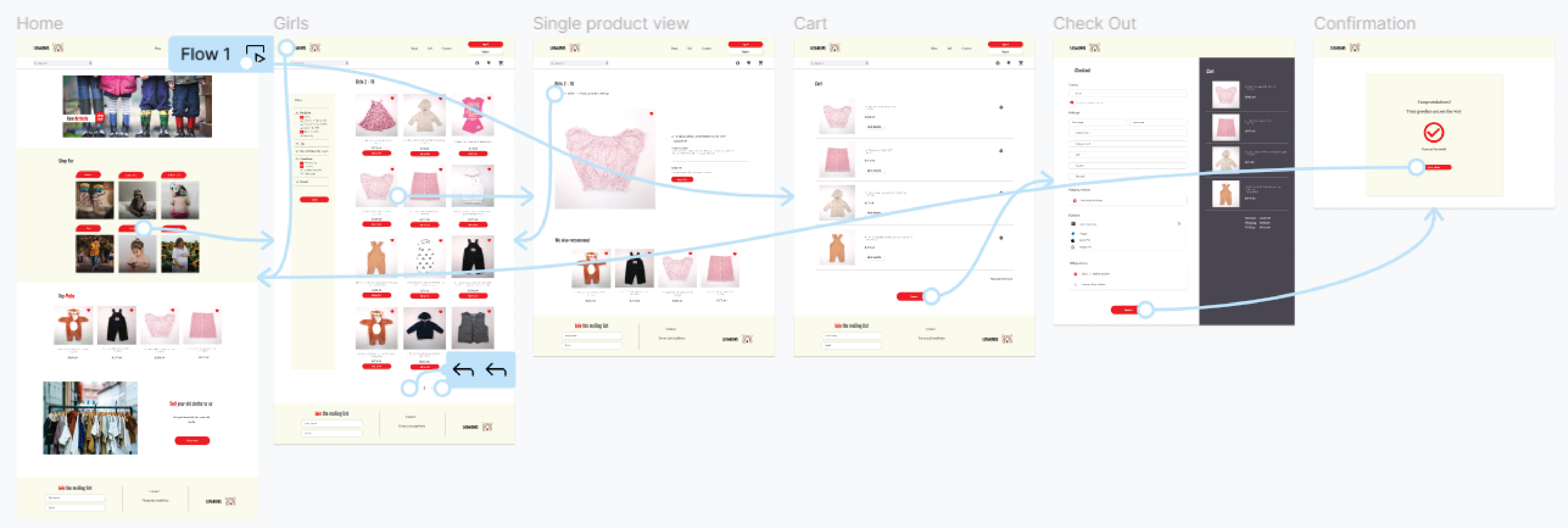 My hi-fi prototype followed the same user flow as the lo-fi prototype, with the change of the categories on the home page being simpler. The login and register pages can be accessed at the top of any page so that users can quickly log in, this way they don’t need to input their information every time they purchase an item, and can save their favorite items for later.